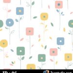 Pastel Geometric Floral Allover Repeat Pattern on White Background
