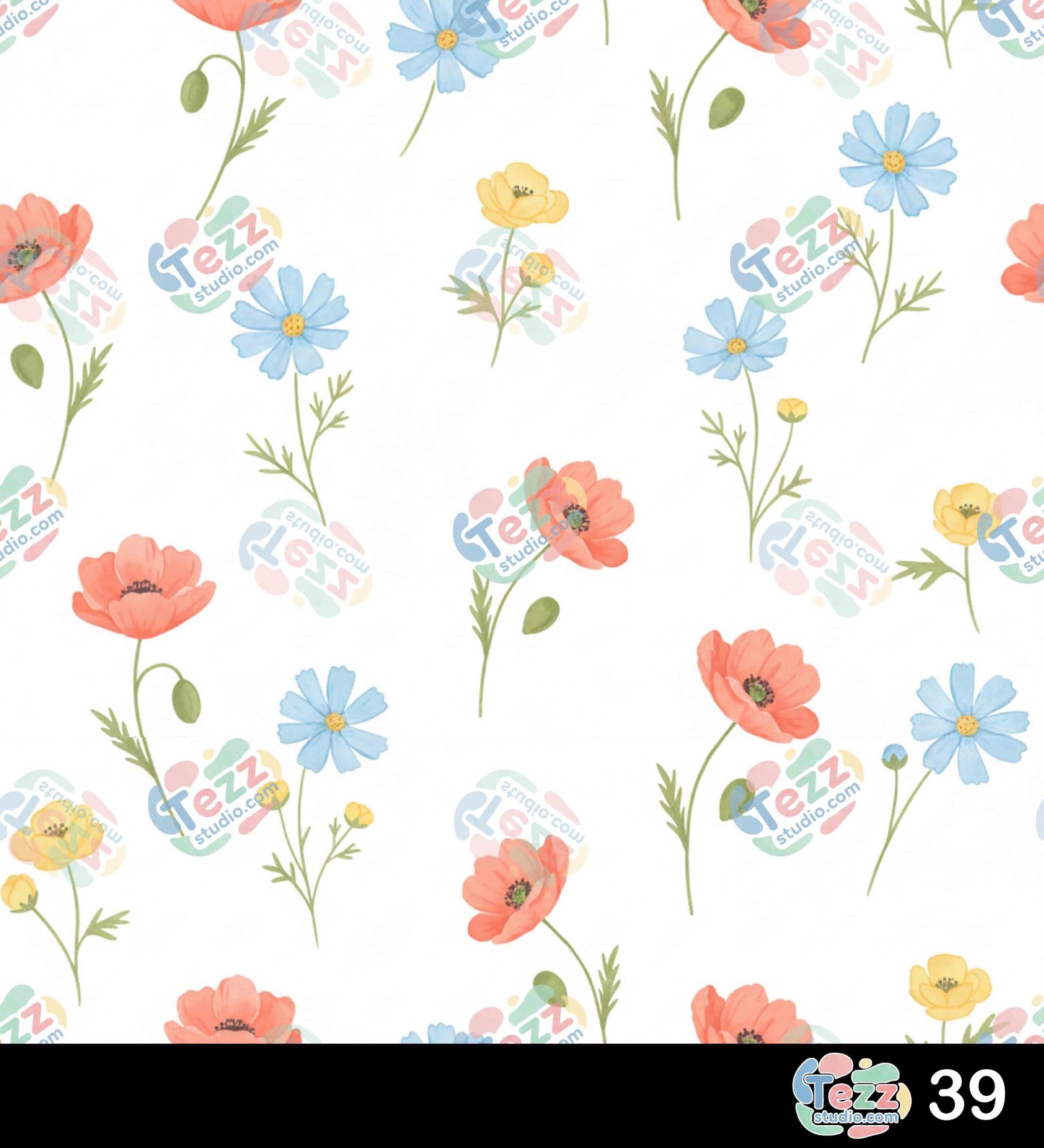 Adorable floral pattern with soft pastel squares and playful composition.