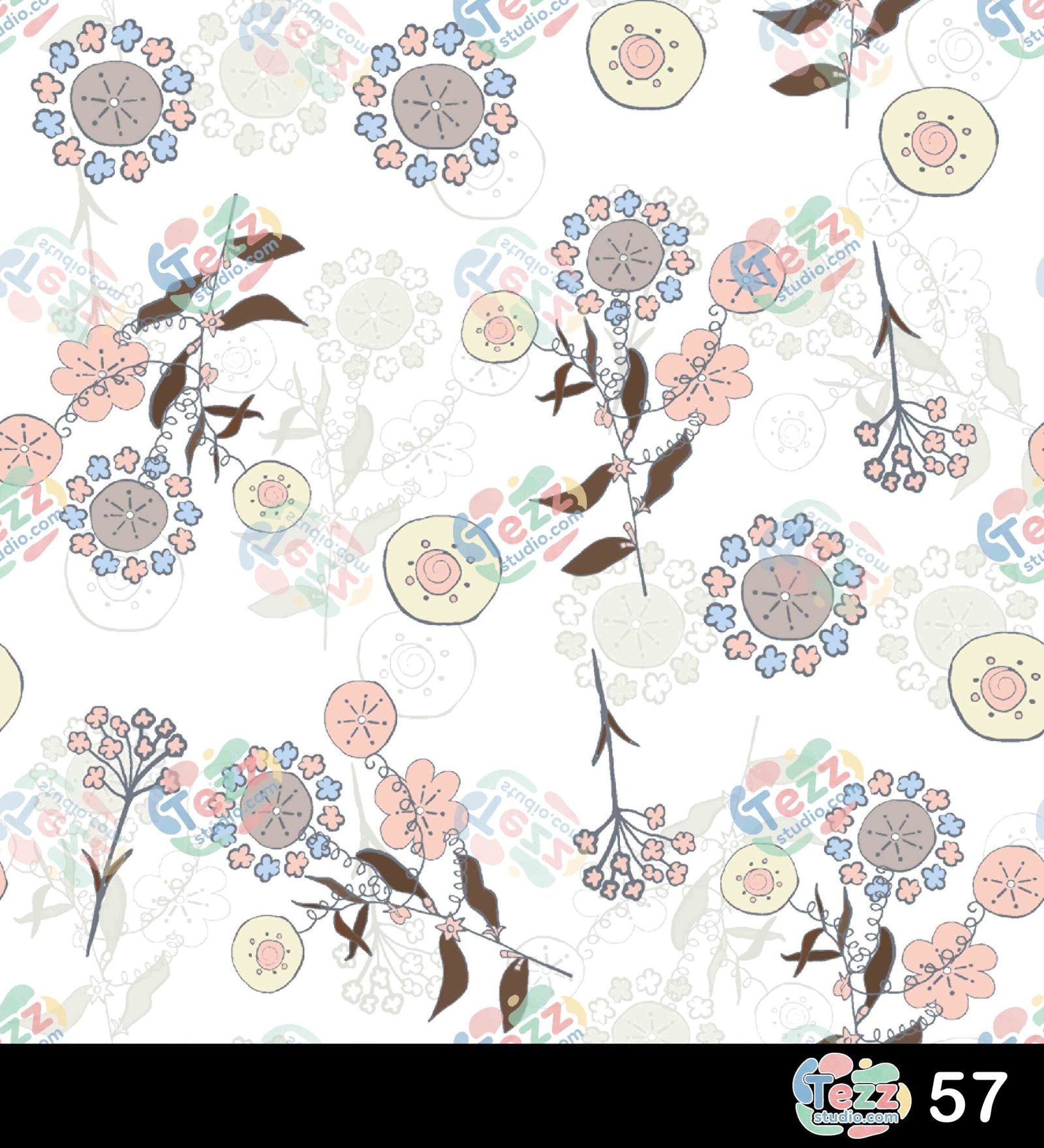 Creative and fun floral background with heart shapes and doodle flowers.