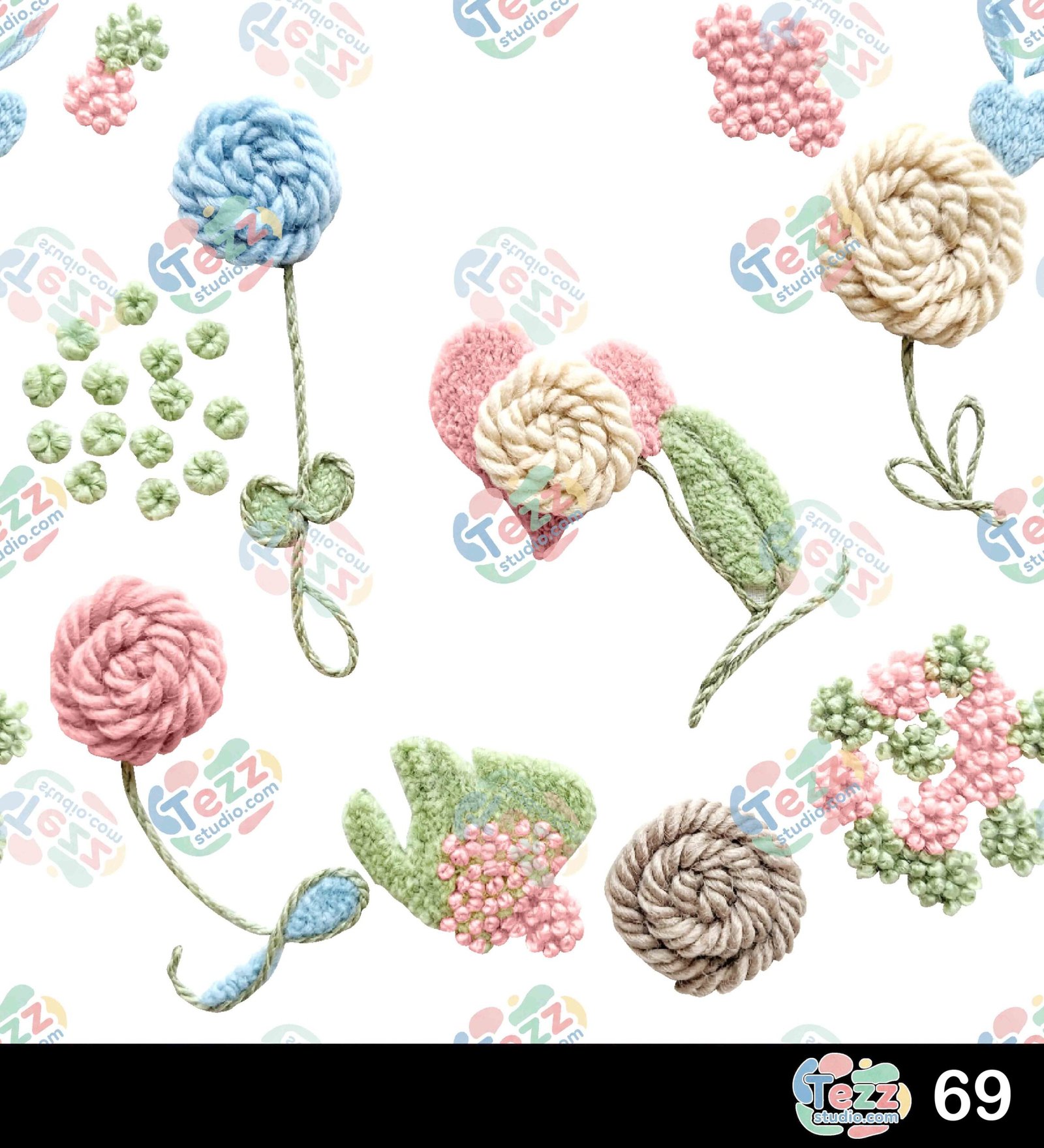 Artistic hand-stitched floral pattern with visible thread effect and unique arrangement, giving a handcrafted feel.