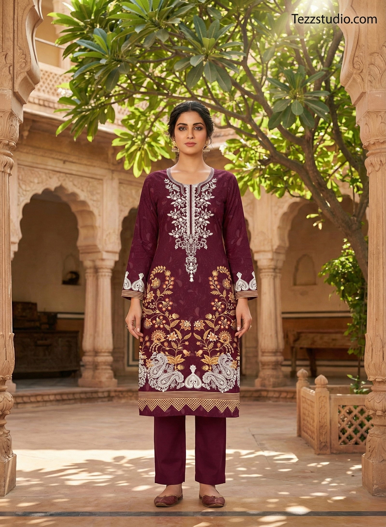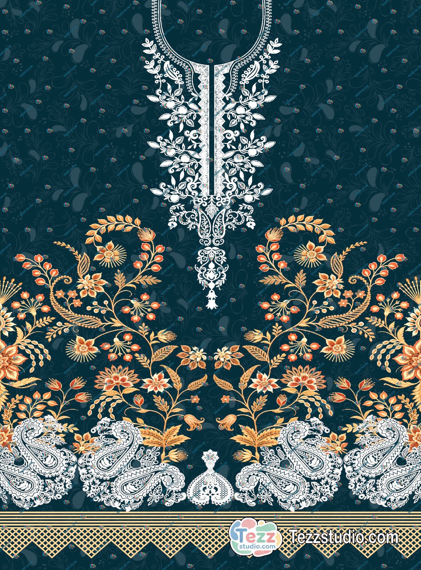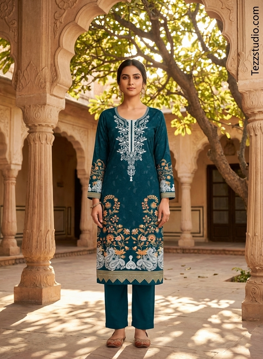 Ideal for festive wear, wedding collections, party wear kurtis, ethnic tunics, and premium designer fabrics, this artwork reflects the richness of traditional Indian embroidery while maintaining a modern, refined look.