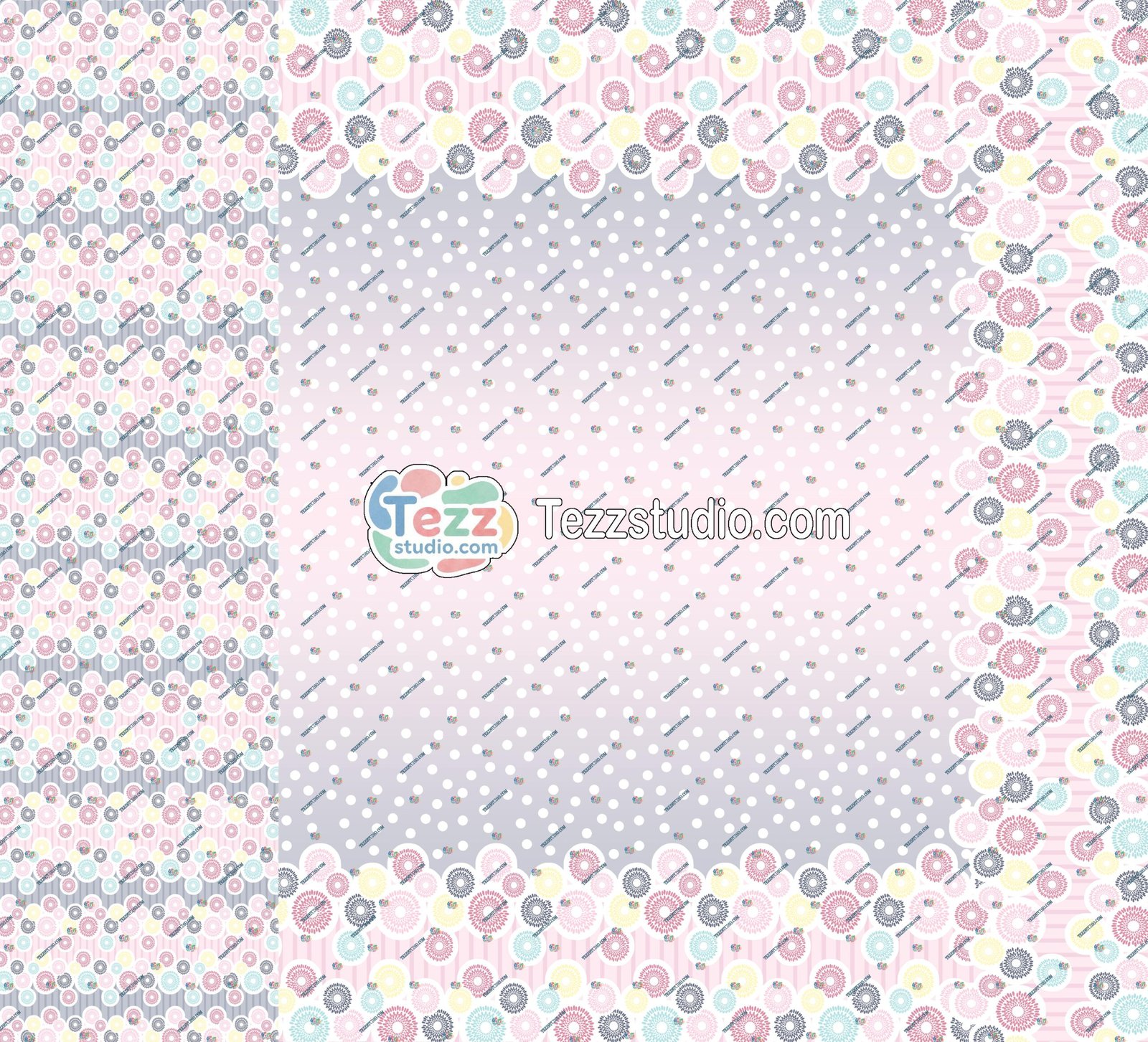 Yeh premium saree design soft pastel color palette ke saath create ki gayi hai, jisme delicate floral lace-style border aur elegant polka dot all-over body ka combination diya gaya hai. Border me circular floral motifs ek continuous pattern me arranged hain, jo saree ko ek classy aur graceful look dete hain.