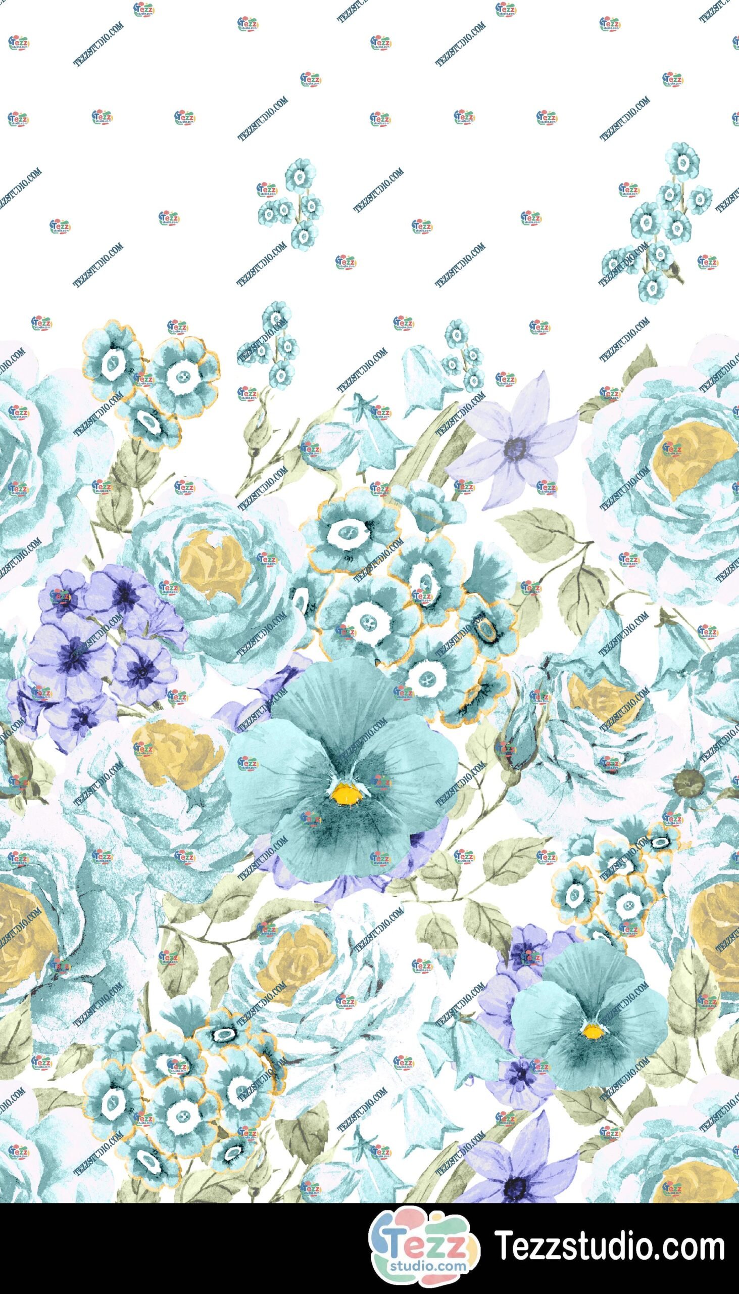 The bottom floral border composition creates a fresh, airy, and premium look, making it perfect for textile prints, saree borders, dupatta edges, kurti panels, invitations, wallpapers, packaging, stationery, and digital design projects.